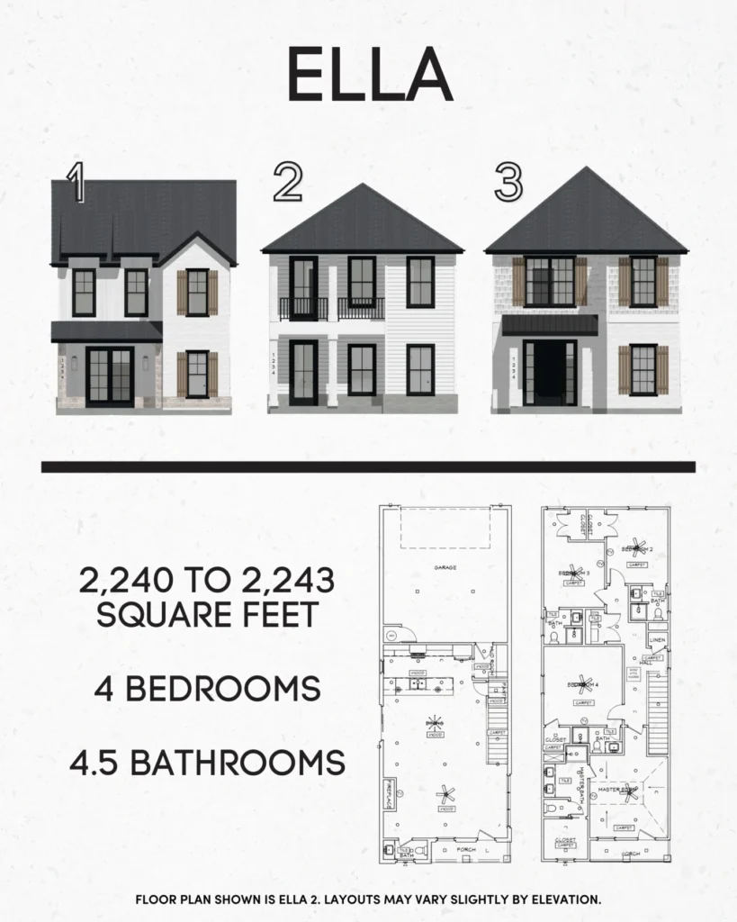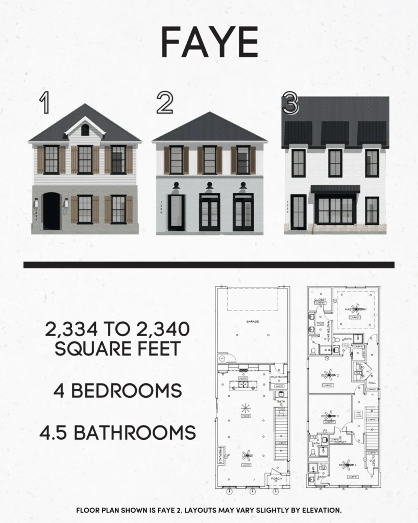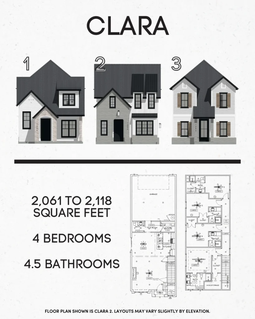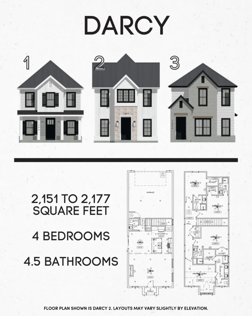 Our thoughtfully designed homes feature 2-story layouts with open floor plans, offering both 3 bed/2.5 bath options and 4 bed/4.5 bath options. In the 4-bedroom homes, every bedroom includes a private ensuite bathroom, creating a level of privacy and convenience that’s hard to find.